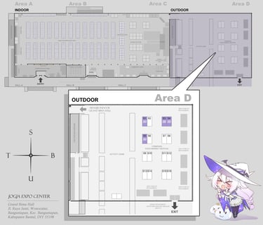 Dilarang menggunakan area melebihi batas booth yang telah ditentukan (6 x 3 meter), baik untuk penempatan barang, banner, dekorasi, maupun perlengkapan lainnya.Properti & Dekorasi Panitia